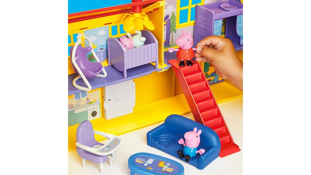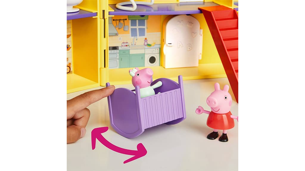 Djeca mogu unijeti svinjsku zabavu u vrijeme igre s Hasbro Peppa Pig: Velika obiteljska kuća igračkom. Ova kuća je inspirirana popularnom predškolskom serijom i sadrži sve sobe koje su djeci potrebne za ponovno odigravanje obiteljskih scena. U kući se nalaze tri spavaće sobe, dnevni boravak, kupaonica, garaža, hodnik i kuhinja. Set sadrži 11 dodataka i tri figure: Peppu, Georgieja i Evie. Ova igračka ne samo da razvija maštu, već pomaže djeci u razumijevanju uloga i obiteljskih odnosa. Detaljno izrađene sobe i dodaci omogućuju djeci da izmišljaju vlastite priče dok proživljavaju svakodnevicu Peppe i njezine obitelji. Ova kuća je savršen izbor za svakog obožavatelja Peppe Pig i pruža sate zabave za cijelu obitelj.