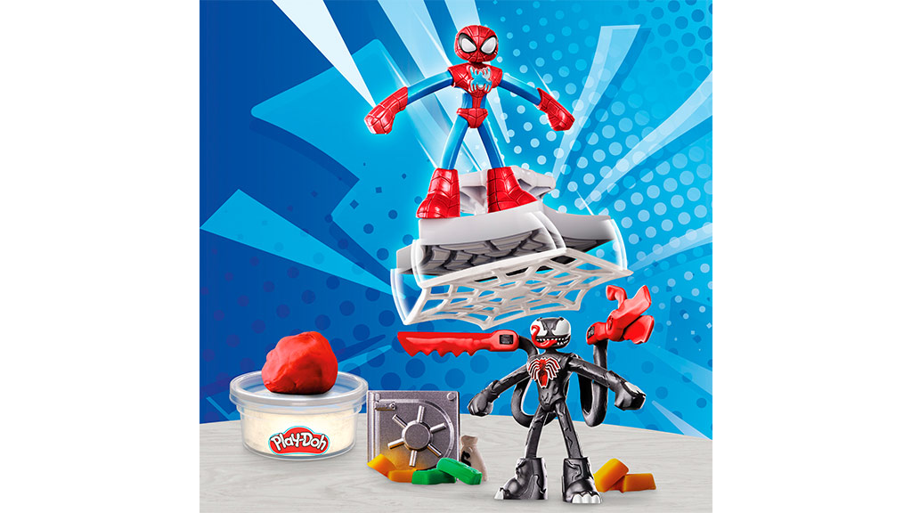 Spider-Man se sukobljava s Venomom u ovom setu koji sadrži Spider-Man i Venom figure, sef pun blaga koje Venom može ukrasti, valjak, pečat koji pravi ogromne Play-Doh mreže, Venomove Play-Doh škare i četiri kutije Play-Doh-a.