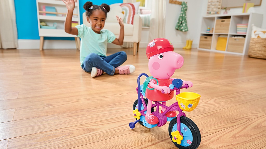 Popularna serija za predškolce, Peppa malac, inspirirala je igru Ready, Pedal, Go Peppa, koja pomaže djeci od 3 godine i starijima da prate Peppu dok uči voziti bicikl. Igra uključuje gurajuću šipku koja podržava najmlađe tijekom prvih igara, a kada postanu sigurniji, šipka se može ukloniti i mogu gledati kako figura samostalno okreće pedale. Ova igra nije samo zabavna, već razvija motoričku koordinaciju i samostalnost, dok se djeca igraju sa svojim omiljenim Peppa malac likovima. Idealan je izbor za svako dijete koje voli biciklirati i Peppa Praščić!