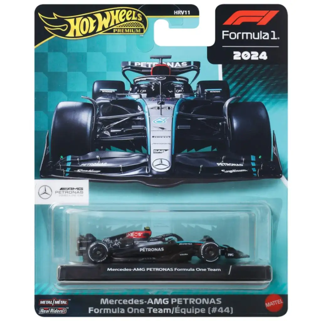 Ekskluzivni član Hot Wheels Premium serije je model Mercedes-AMG PETRONAS Formula 1 Team No. 44, koji prikazuje jedan od najpoznatijih trkaćih automobila sezone Formule 1 2024. Ikonično crno-tirkizno timsko bojanje, detaljna grafika sponzora i precizno izrađeni aerodinamički elementi vjerno odražavaju tehničku sofisticiranost i natjecateljski duh Mercedesovih F1 automobila. Model u svakom detalju podsjeća na proporcije i karakter pravog trkaćeg automobila.