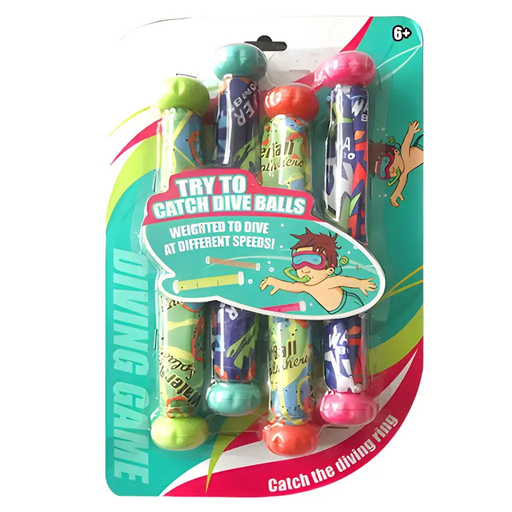 Pripremi se na novi podvodni izazov za svoje dijete s ovim setom od 4 ronilačke štapice! Različite brzine potonuća i živopisne boje čine ove ronilačke štapice savršenima za igre u bazenu. Ove štapice nisu samo zabavne, već i poboljšavaju podvodne plivačke sposobnosti i tehnike disanja. Djeca mogu uživati u igri "zaroni i uhvati" dok skupljaju šarene štapice na dnu bazena. Zahvaljujući različitim težinama uključenim u paketu, svaki zaron bit će nova avantura, a traženje štapica pružit će uzbudljivo iskustvo potrage za blagom.