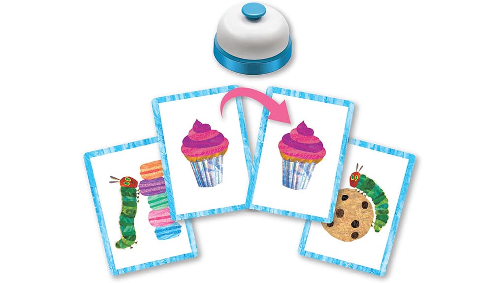 U ovoj igri mališani mogu vježbati uparivanje i pamćenje, dok uživaju u živim bojama poznatim iz klasične slikovnice Erica Carlea. Kada igrači pronađu par, zazvone zvonom i uzviknu: "Ukusno!", kako bi proslavili svoj uspjeh. Na kraju igre pobjeđuje igrač koji pronađe najviše parova!Stil i likovi iz zbirke knjiga The Very Hungry Caterpillar već dugo su zabavni dio vremena za igru. Obitelji nikad ne mogu dobiti dovoljno od ove drage priče i umjetničkih ilustracija, pa je ova igra uparivanja izvrstan način za nastavak obiteljske tradicije. Djeca i njihovi roditelji mogu zajedno uživati u igri dok razvijaju svoje pamćenje i sposobnost opažanja. Tijekom igre djeca se iznova susreću s omiljenim likovima, što još više produbljuje njihovu ljubav prema knjizi. Ova igra nije samo zabavna, već i edukativna, jer pomaže djeci u prepoznavanju boja, oblika i uzoraka. Za obitelji je ovo izvrsna prilika da provedu kvalitetno vrijeme zajedno dok djeca uče i razvijaju se.