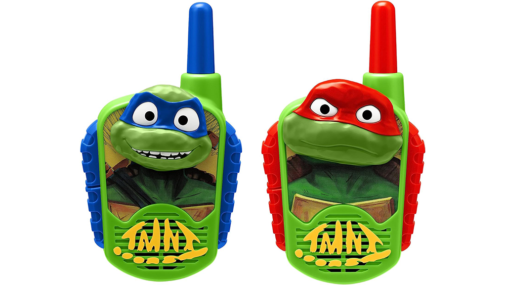 Tinejdžerski mutant ninja kornjače walkie-talkie spremni su za misiju! Šaljite poruke bez statike jednim pritiskom na gumb, s kontrolama prilagođenim djeci. Ovi walkie-talkie imaju domet do 150 metara.