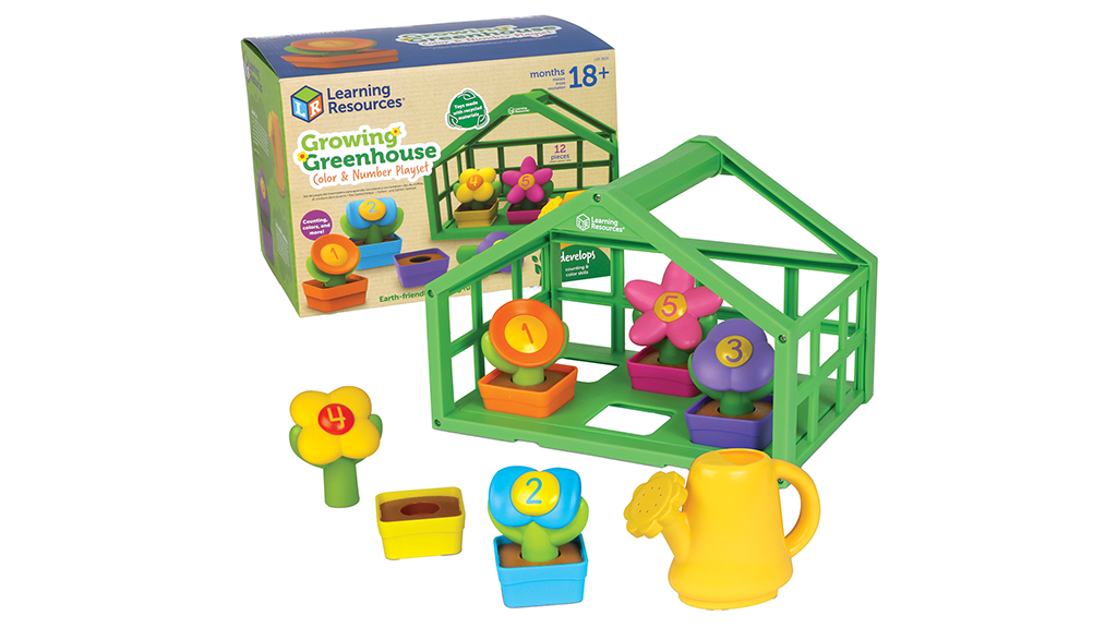 Djeca mogu vježbati vještine boja i brojanja dok razvrstavaju, uparuju i broje latice cvijeća te identificiraju brojeve na tučkovima. Sve stane u staklenik, tako da se može igrati i u pokretu. Sadrži funkcionalnu zalijevku i vodič za aktivnosti.