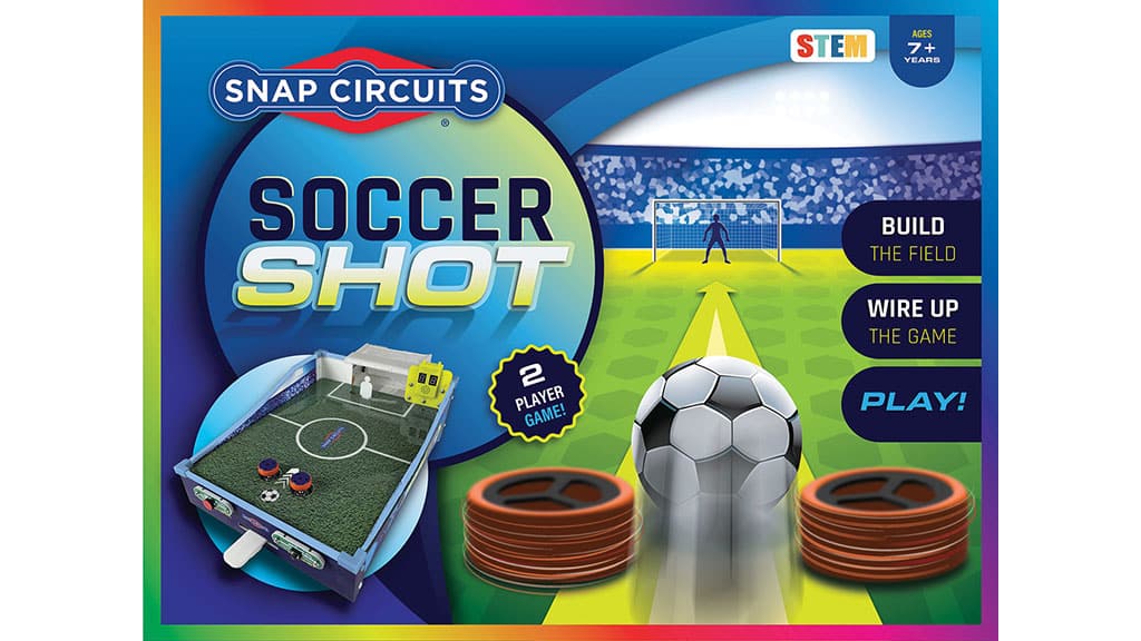 Snap Circuits Soccer Shot uzbudljivo je natjecanje za dva igrača koje pretvara nogometne kaznene udarce u izazov. Djeca prvo sastavljaju igru, a zatim se upuštaju u akciju: jedan igrač puca, dok drugi brani kao golman. Prvi koji postigne devet golova pobjeđuje. Ova igra nije samo zabavna, već i razvija dječju spretnost i strateško razmišljanje, dok istovremeno jača njihovu ljubav prema sportu.