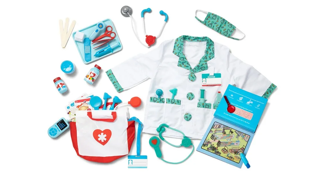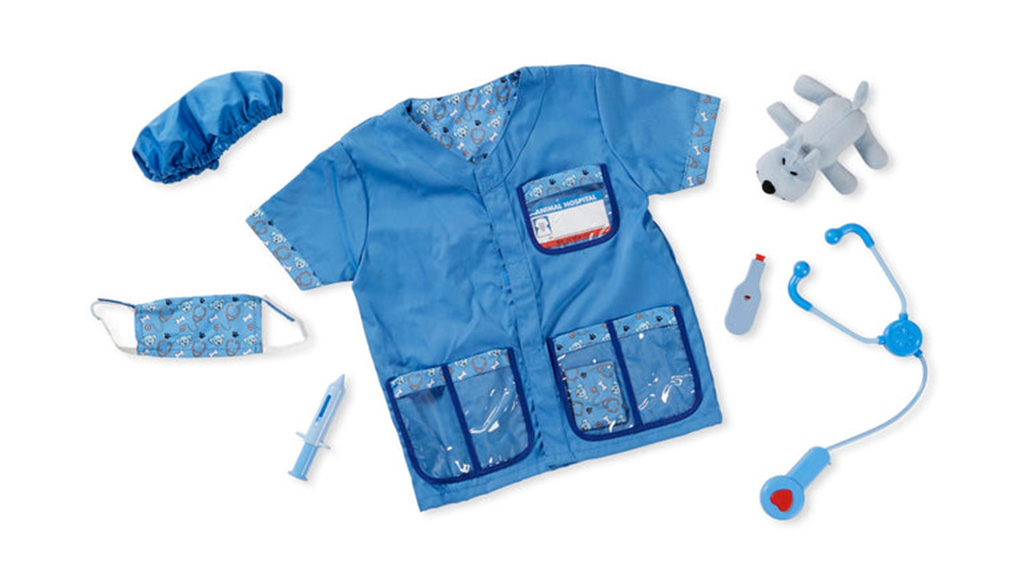 Mališani mogu sudjelovati u zamišljenoj igri kako bi se brinuli o svojim zamišljenim kućnim ljubimcima i plišanim životinjama. Set sadrži kaput, masku, kapu, toplomjer, stetoskop sa zvučnim efektima, zavoj, špricu, plišanog psa i višekratnu pločicu s imenom. Ovaj set nije samo zabavan, već razvija empatiju i sposobnost brige kod djece.