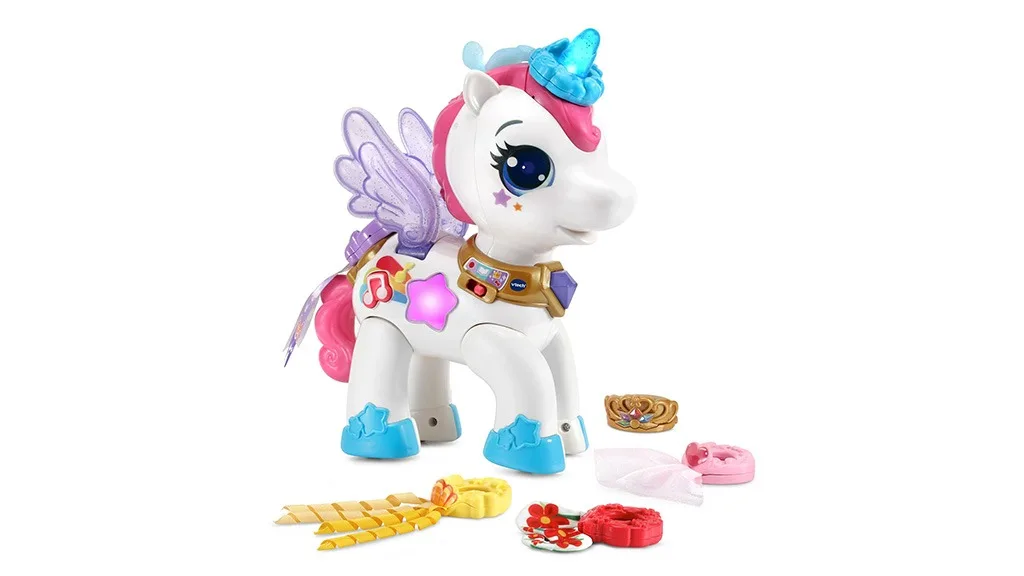 proizvodima iz niže kategorije VTecha koji jamče da će vrijeme igranja biti jednako produktivno koliko i zabavno.Upoznajte se s jednim živahnim, zabavnim prijateljem u Storytime With Sunny! Sunnyjeva izražajna osobnost zaokuplja djecu dok priča priče pune iznenađujućih zapleta koje održavaju njihovu pažnju na svaku riječ. Sunny poziva na sudjelovanje u više od 300 aktivnosti kroz četiri diska, koji ukupno sadrže više od pet sati čarobnih priča, klasičnih pjesama, pitalica, stvaranje pjesama, smiješnih...Ovaj interaktivni radni stol dolazi s električnim alatima, ručnim alatima, pladnjem, perforiranom pločom i još mnogo toga. Kada djeca postave sve alate na stol, mogu čuti zabavne činjenice i zvučne efekte. Uključuje devet ideja za projekte za mlade graditelje.Djeca mogu prilagoditi ovog pjevajućeg, govorećeg, svijetlećeg jednoroga koji dolazi s šest dodataka. Jednorog prepoznaje svaki dodatak i predstavlja pojmove kao što su brojanje, boje i emocije.
