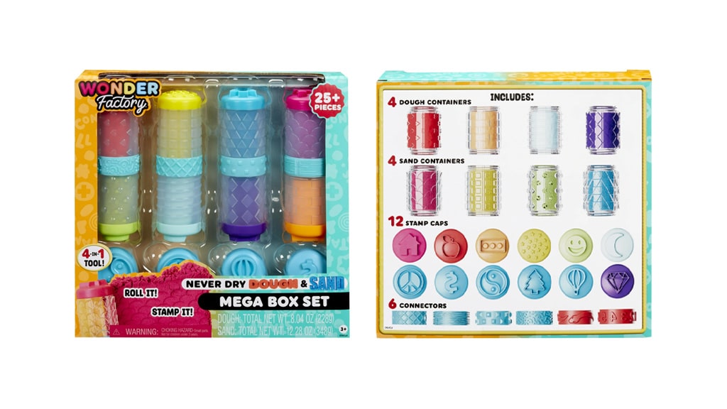 Svi materijali su zapakirani u jednoj valjku, koji istovremeno služi kao pečat, izrada uzoraka i spremnik. Poklopac sadrži različite uzorke koje djeca od 3 godine i starija mogu utisnuti u materijal, dok tijelo valjka skriva razne oblike i uzorke koje kreativni korisnici mogu utisnuti u plastelin ili pijesak. Valjci se mogu međusobno povezivati, čime se može stvoriti još više uzoraka i kreacija, pa tako postaje 4-u-1 alat. Ova svestrana igračka razvija kreativnost, finu motoriku i pruža zabavno iskustvo djeci.Obitelji se mogu igrati s kompletima kao što su Wonder Factory Nikad-ne-sušeći plastelin Mega Box Set, Creation Station i Extruder. Mega Box Set sadrži osam tubi plastelina, dvanaest poklopaca i šest priključaka, što nudi brojne mogućnosti za kreativno stvaranje. Creation Station dolazi s tri tube plastelina, pet poklopaca, jednim priključkom i četiri nastavka, s kojima se mogu izrađivati razni oblici. Extruder set sadrži različite nastavke koji omogućuju izradu novih oblika i uzoraka, tako da dječja mašta može slobodno letjeti. Ovi setovi nisu samo zabavni, već razvijaju i finu motoriku, kreativnost i suradnju, dok obitelj može zajedno provoditi kvalitetno vrijeme.