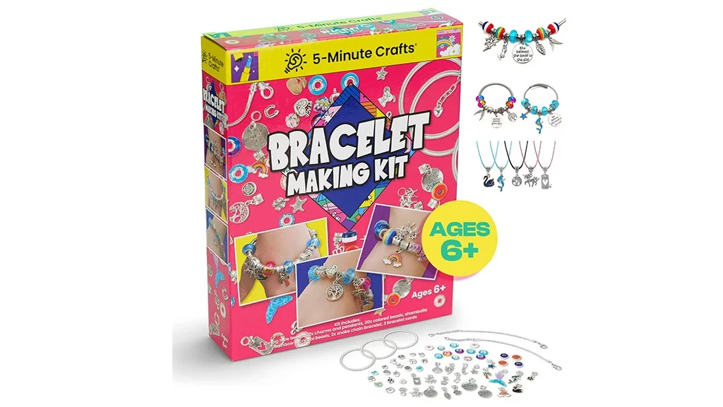 Set za izradu ručnih narukvica od 5 minuta uključuje 20 obojenih perli, 15 perli s velikim rupama, dvije narukvice od zmija lanca, tri konca za narukvice i plastičnu kutiju za pohranu. Ljubitelji nakita mogu izrađivati jedinstvene narukvice, biti sigurni u svoj stil, dok uspinju svoju koordinaciju ruke i oka.