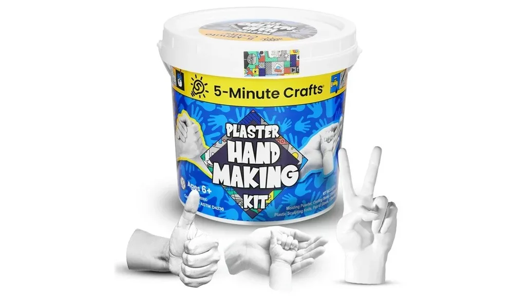 5-minutni Set za izradu gipsanih ruku može rezultirati ozbiljnim smijehom ili dirljivim trenucima. Set sadrži sve potrebne alate za stvaranje uspomena uklesanih u kamen, poput oblikovnog praha, mješavine za lijevanje, brusnog papira, kiparskog noža, rukavica i još mnogo toga.