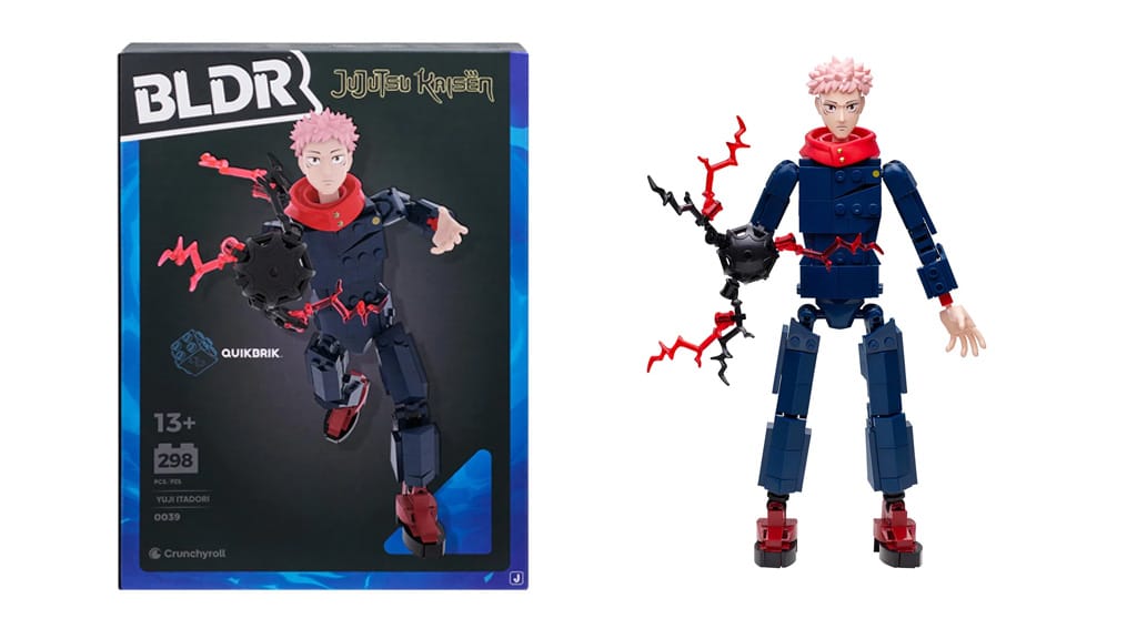 Jazwares BLDR Jujutsu Kaisen Yuji Itadori građevinski set sastoji se od 298 dijelova koje mogu povezivati djeca od 13 godina i starija. Uz pomoć priložene knjižice s uputama, graditelji mogu sastaviti glavnog lika iz animea Jujutsu Kaisen, koji će biti visok 25 cm kada je gotov. Set uključuje i verziju slavnog Yuji Itadori napada Black Flash koju se može izgraditi, tako da obožavatelji mogu još vjernije prikazati svoje omiljene scene. Ovaj set ne samo da razvija kreativnost i spretnost, već pruža i izvrsnu zabavu obožavateljima Jujutsu Kaisen-a.