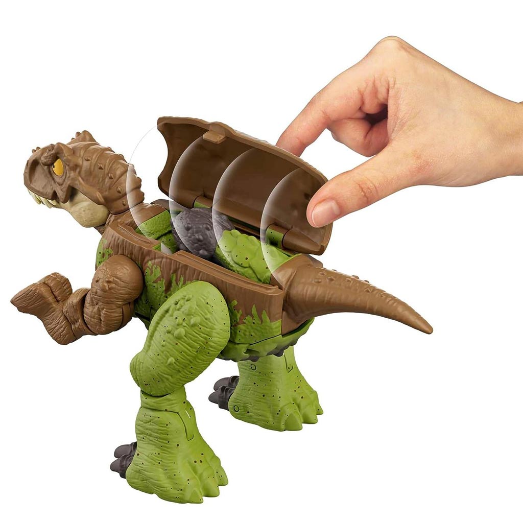 Jurassic World: Evoluirajući Tyrannosaurus T-Rex → Ankylosaurus dinosaur igračka 13cm - Mattel
