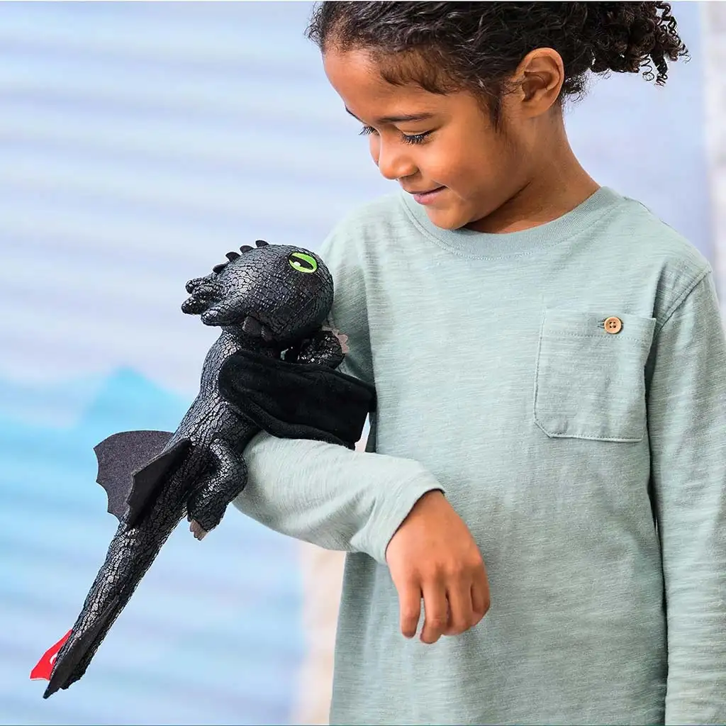 Poleti u svijet mašte s najslađim i najprigrljivijim zmajem, Bezzubim, kojeg sada možeš nositi svuda na svojoj ruci! Omiljeni Noćifurija iz svijeta Kako izdresirati zmaja sada se vraća u posebnom izdanju: može se pričvrstiti na ruku, tako da djeca zaista mogu osjetiti kao da imaju vlastitog zmaja kojeg mogu povesti svuda sa sobom. Igračka duga 30 cm, izrađena od mekanog materijala, nije samo za grljenje, već pruža i interaktivno iskustvo igre, jer raširenih krila izgleda kao da je spreman za let.