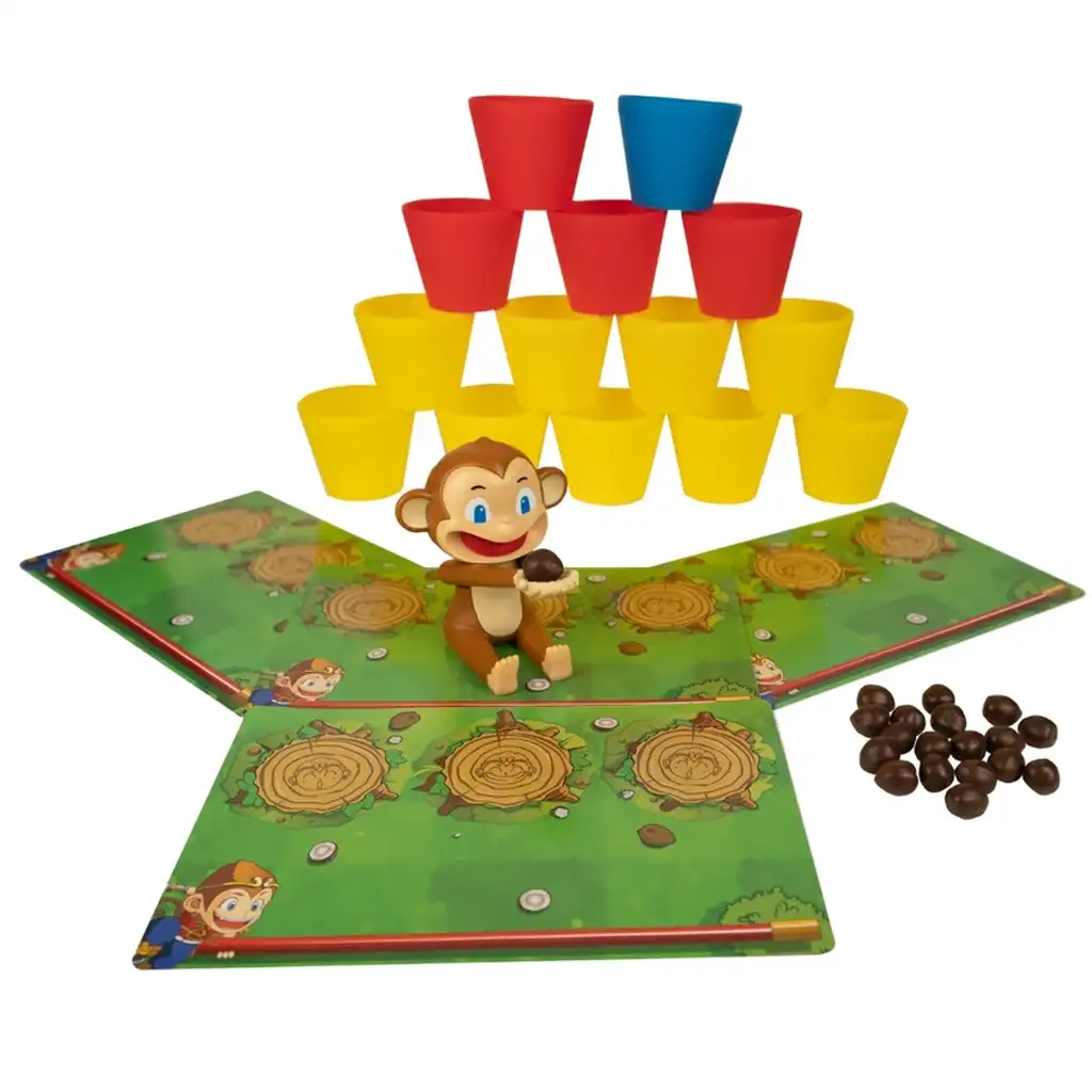 Pripremi se za ludu avanturu ispunjenu smijehom duboko u džungli, gdje su majmuni i kokosi glavne zvijezde! Društvena igra "Kokosfokus" izuzetno je zabavna i lako naučiva igra spretnosti, u kojoj ti je cilj ubaciti što više kokosa u svoje male košare. Posebnost igre je majmunska katapulta – njome trebaš izbaciti kokose u zrak, precizno i u pravom trenutku.
