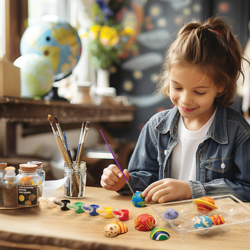 Ako želiš svojem djetetu pružiti zaista posebnu i poučnu aktivnost, ovaj komplet za lijevanje i bojanje gipsanih modela s temom Sunčevog sustava izvrstan je izbor! Uz set može izraditi vlastite planete, a zatim ih po želji obojati, te na zabavan način upoznati svijet svemira. Zahvaljujući svjetlećoj boji, gotova djela sjaje u mraku, što igru čini još uzbudljivijom. Savršen kreativni program koji razvija spretnost ruku i maštu.