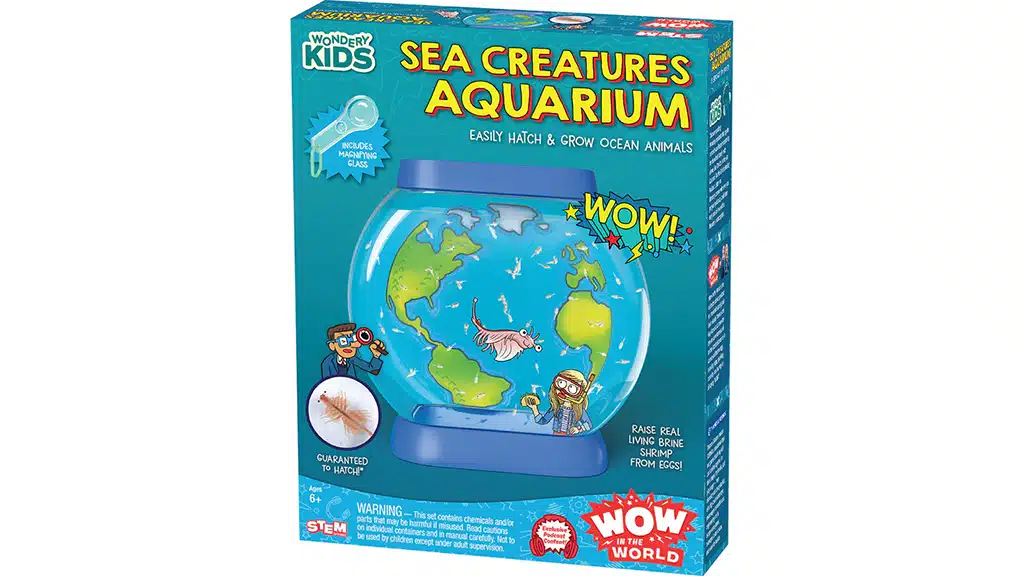 Sastavi vlastiti akvarij kako bi tvoji morski organizmi pronašli dom! Pripremi "slanu vodu", zatim promatraj kako se iz priloženih "jaja" izlegu mali "slanoribi", plivaju, hrane se priloženom "hranom" i polako rastu. Zabavan, osam stranica dug, šareni vodič detaljno objašnjava kako sastaviti akvarij, kako izlegati i brinuti se za male organizme. Sastavljanje akvarija nije samo uzbudljivo, već i edukativno, jer možeš upoznati životni ciklus morskih organizama i osnove njihove njege. Ova aktivnost pruža izvrsnu priliku da se približiš prirodi i promatraš čuda vodenog svijeta.