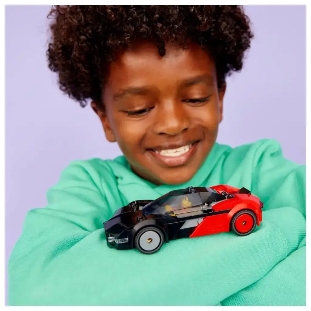 • BAŠ KAO PRAVI – Podigni stražnja vrata malog crveno-crnog sportskog automobila kako bi pristupio bateriji, i smjesti minifiguru za volan za vožnju punom brzinom