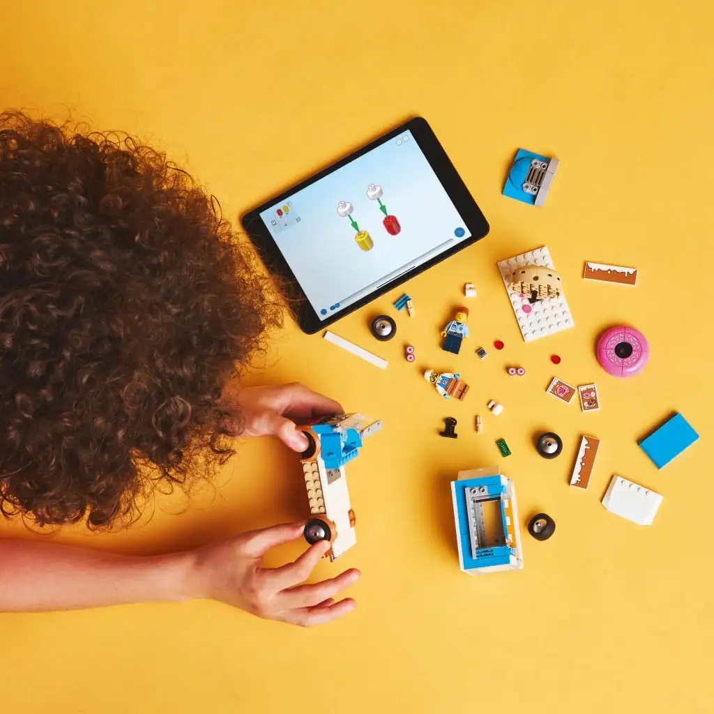 U kutiji ćete pronaći i upute za izgradnju LEGO City mobilne prodavaonice krafni. Ili posjetite aplikaciju LEGO Builder, gdje djeca mogu otkrivati i spremati setove, te zumirati, rotirati i pregledavati svoj model iz svih kutova tijekom izgradnje.