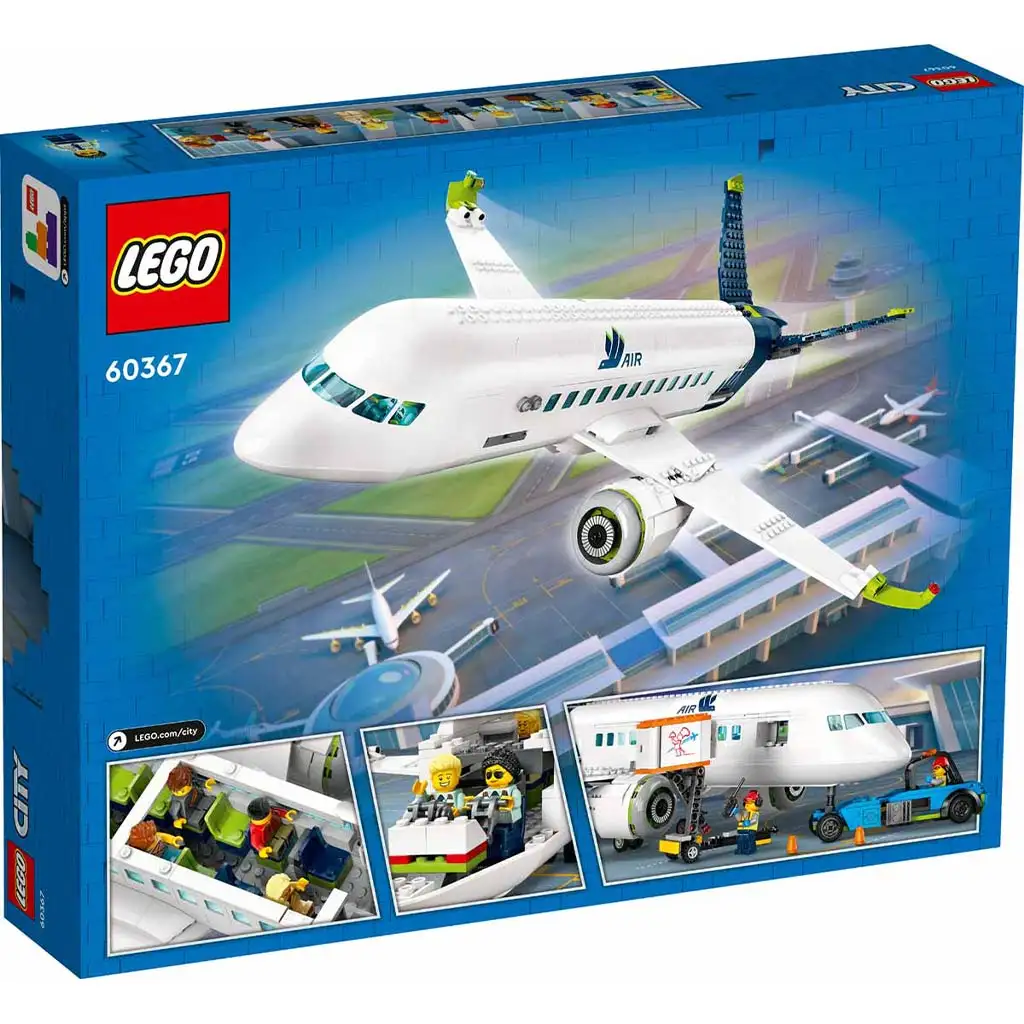 Izvrsno iznenađenje za ljubitelje modela aviona. LEGO® City Putnički avion (60367) igračka set za djecu od 7+ godina prepun je realističnih značajki i funkcija. Super glatki igrački avion ima detaljno izrađen unutrašnji prostor, uključujući pilotsku kabinu, putničku kabinu, hodnik i WC. Set također uključuje stepenice za ukrcavanje, apron-bus, pushback traktor, prtljažni kolica i 9 minifigura za odmah početak igre.