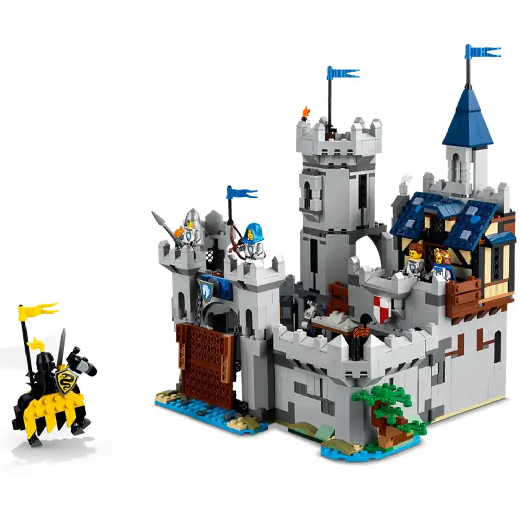 Djeca od 9 godina i starija mogu izgraditi 3 različite verzije: interaktivni set dvorca, set viteškog turnira i maleni dvorac, ili set koji prikazuje srednjovjekovni grad sa vjetrenjačom. Uz set dolazi 6 minifigura: viteški kralj, viteški šampion, viteški strijelac, viteški kopljanik, kovač, zmajski vitez i 2 podesiva konja.