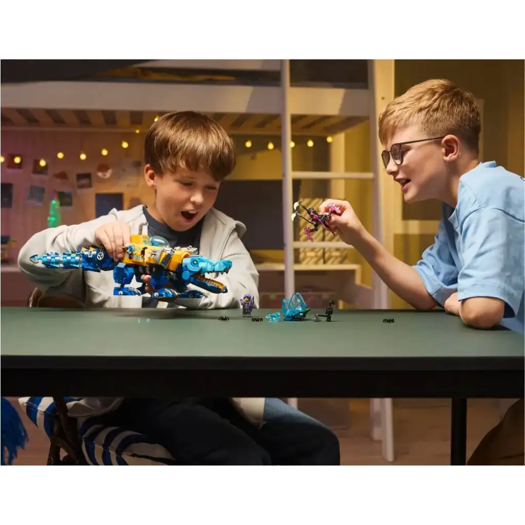 Djeca mogu potpuno osloboditi svoju kreativnost s LEGO® DREAMZzz™ Podmornicom krokodilom (71512), građevinskim setom namijenjenim dječacima i djevojčicama od 8 godina nadalje. Set nudi dvije uzbudljive mogućnosti slaganja, tako da sanjari model podmornice mogu pretvoriti u igračku krokodila ili u igračku letećeg orla. Podmornica ima dvostruke bacače i skriveni pretinac, kao i kokpit prikladan za minifiguricu. U načinu krokodila ima pomični vrat, noge i rep, dok u načinu orla ima pomična krila i perje na krilima koja izlaze iz motora. Maštovitu igru upotpunjuju minifigurice Logana, Zoey i Arike, kao i figura Aveta, 2 pauka i kolekcionarski Plavi Stvorik. Uz Logana dolazi kolekcionarski plavi mač, Zoey ima luk, a Arika kosu. Set je odličan poklon za dječake i djevojčice, a uključuje i vodič za slaganje temeljen na priči, zahvaljujući kojemu se djeca mogu potpuno uživjeti u pustolovinu. Upute su dostupne i digitalno u LEGO Builder aplikaciji, gdje graditelji mogu povećavati i rotirati svoje kreacije, kao i pratiti svoj napredak. Set sadrži 1107 dijelova.