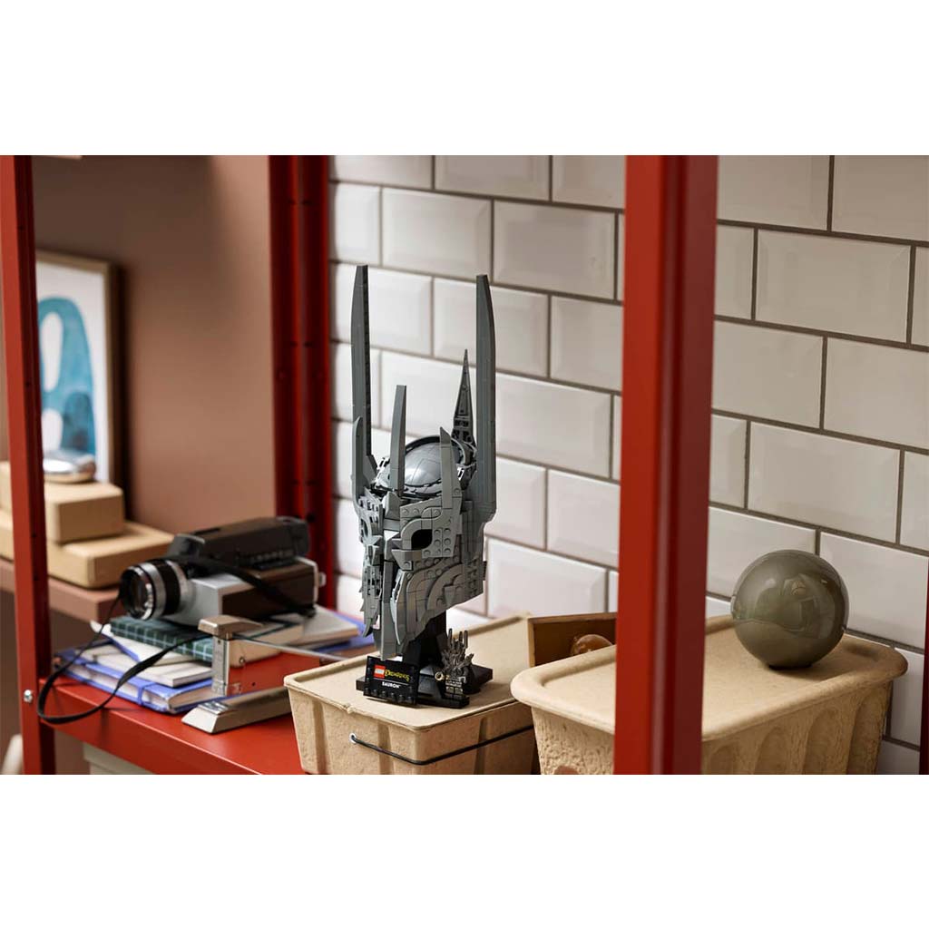• SADRŽAJ PAKIRANJA – Sve što je potrebno za izradu replike Sauronove kacige, kao i stalak za izlaganje s natpisnom pločicom te minifigura Saurona™ koja drži Jedan Prsten u ruci