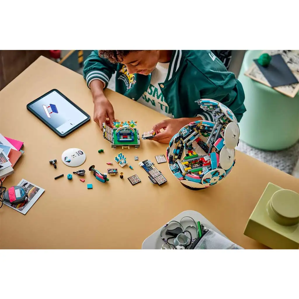 Pokreni dječju kreativnost uz LEGO® Editions Nogometnu loptu (43019) — set za sastavljanje namijenjen dječacima i djevojčicama od 10 godina i starijima! Sadrži mnoštvo fantastičnih detalja pa obožavatelji mogu sastaviti gotovo 1:1 LEGO model nogometa, inspiriran službenom loptom veličine 5 koja se koristi na nogometnim utakmicama. Kolekcionarski set uključuje LEGO Technic elemente koji omogućuju stvaranje zaobljenog oblika; na vanjskoj strani lopte nalazi se 6 stilskih ukrasnih diskova, a iznutra čeka uzbudljiva mini stadion proslava za otkrivanje. Djeca mogu pritisnuti gumb i promatrati kako figure nogometaša slave pobjedu dok iza pozornice izbijaju vatrometi. Među ostalim zabavnim detaljima stadiona su mali zlatni trofej u sredini i veliki zasloni. Ovaj set je izvrstan sportski poklon za nogometne obožavatelje svih uzrasta i dizajniran je za izlaganje — može se jednostavno postaviti na priloženi crni stalak nakon sastavljanja. Dostupan je i u aplikaciji LEGO Builder, gdje obožavatelji mogu pratiti svoj napredak. Set sadrži 1498 komada.