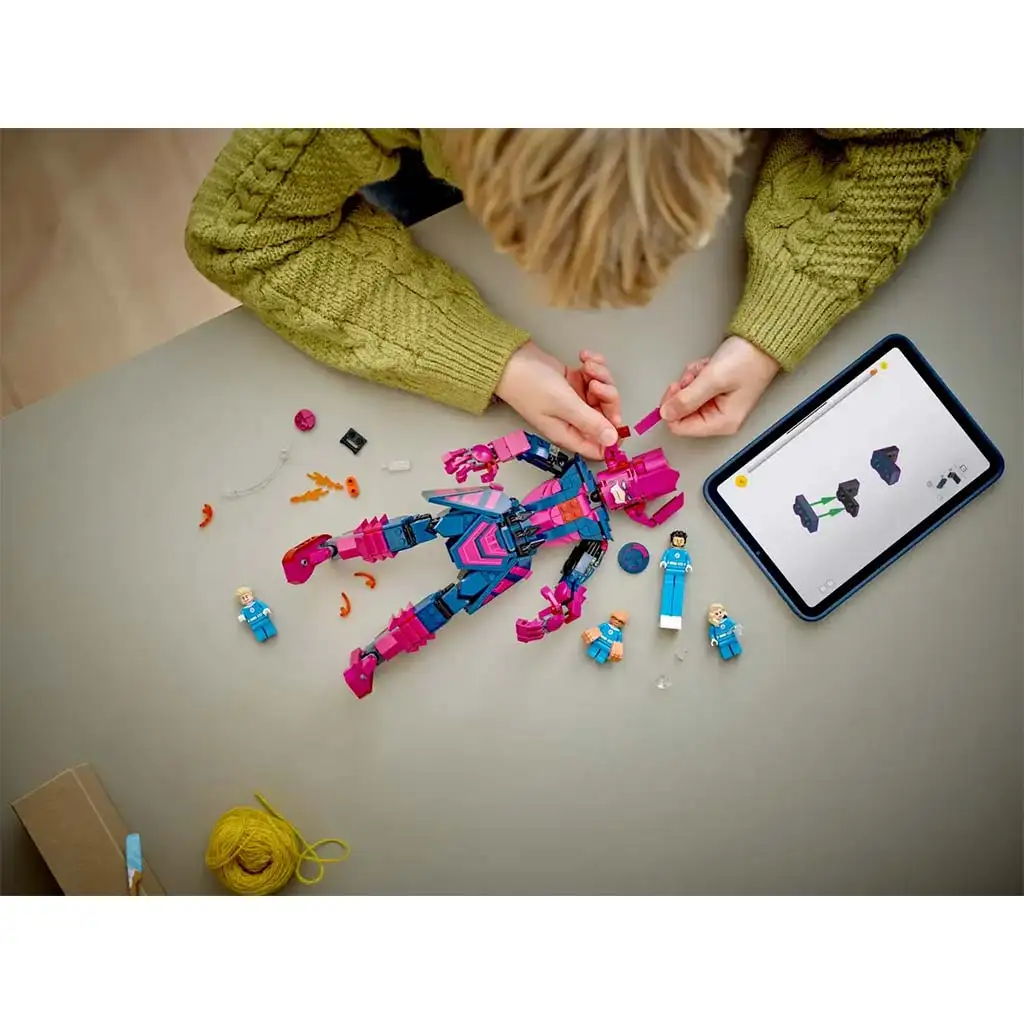 • LEGO® Fantastična Četvorka set za djecu – Set za slaganje Fantastična Četvorka vs. Galactus inspiriran je filmom Marvel Studios: The Fantastic Four: First Steps, preporučen za djecu od 9 godina nadalje