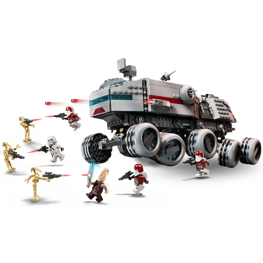 Set sadrži i 5 LEGO Star Wars minifigura: Ki-Adi-Mundi s svjetlosnim mačem, zapovjednik Bacara i 3 Nova klon-vojnika, svaki s laserskim pištoljem. U setu su još i 3 LEGO figura borbenih droida, također naoružana laserskim pištoljima. Postavi LEGO minifigure u prednju i stražnju kabinu za upravljanje, teretni prostor (s sjedalima i stalkovima za oružje), na povišenu osmatračnicu ili u topovsku kupolu opremljenu ispaljivačem diskova!