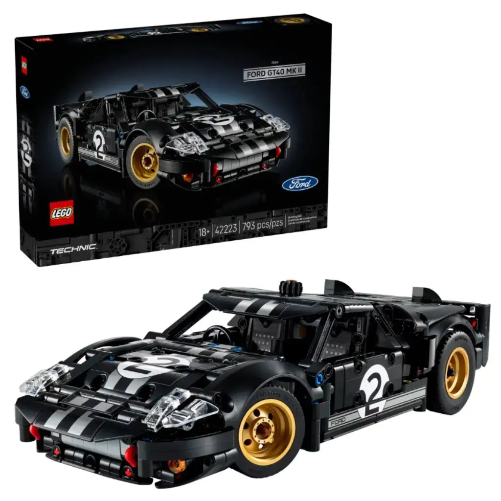 Kreni prema ciljnoj liniji i proslavi jedan od najikonijih automobila s LEGO® Technic modelom trkaćeg automobila 1966 Ford GT40 MKII za odrasle (42223)! Ljubitelji automobila, utrka i slaganja od 18 godina i stariji mogu ponovno proživjeti atmosferu legendarnih sportskih dostignuća uz realistični model legendarnog retro automobila. Uživaj u otkrivanju detaljnih funkcija seta! Za upravljanje koristi gumb na krovu automobila! Pogledaj vrata koja se otvaraju i divi se crno-srebrnom dizajnu koji je inspirirao pravi pobjednički auto. Podigni poklopac motora i otkrij V8 motor, a zatim otvori haubu polugom unutar vozila! Nakon što ga sastaviš, ponosno izloži svoj trkaći automobil u bilo kojoj prostoriji ili uredu. Ispuni svoju strast za moćnim vozilima s kolekcionarskim LEGO Technic automobilima za odrasle! Poboljšaj iskustvo slaganja uz LEGO Builder aplikaciju! U aplikaciji možeš povećavati i okretati setove uz 3D upute, kao i spremati i pratiti svoj napredak. Set sadrži 793 dijela.