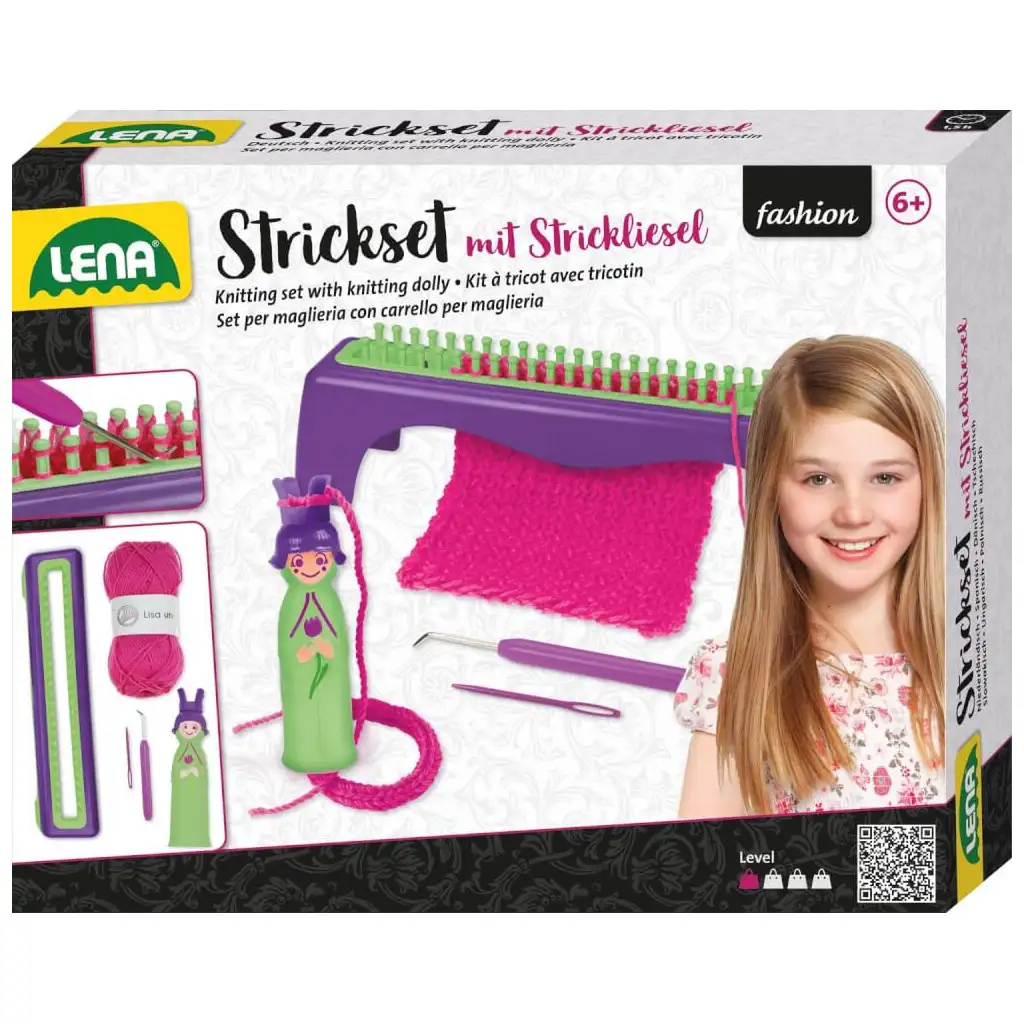 LENA® pletilica s koncem i kukicom pruža potpuno kreativno iskustvo za male obrtnike. Ovaj složeni set uključuje sve što je potrebno za stvaranje pletenog projekta, uključujući pletenu deku, pletilicu, igle za pletenje, plastičnu iglu i bojom usklađenu pletenu vunu.