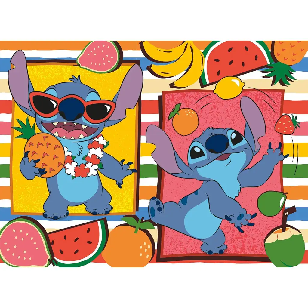 Slika puzzli prikazuje Stitcha u njegovom najveselijem izdanju: nosi sunčane naočale, u ruci drži ananas i uživa u voćnom ljetu u tropskom okruženju. Žive boje pozadine i tropsko voće čine igru doista privlačnom i veselom. Veći broj dijelova nudi dodatni izazov, pa je iskustvo slaganja još uzbudljivije za stariju djecu predškolske dobi.