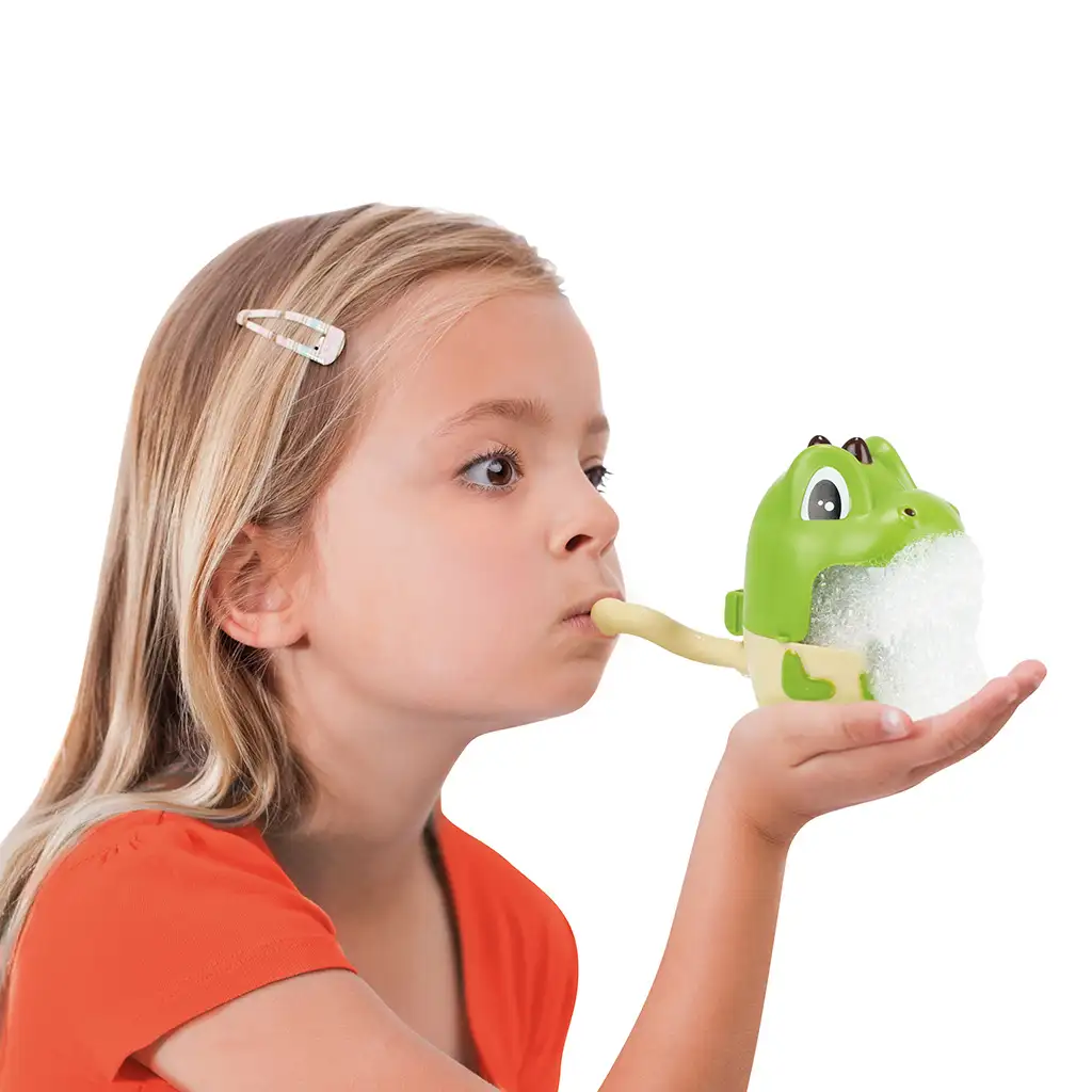 Rad igračke je jednostavan i zabavan: usta životinje se mogu otvoriti, a zatim napuniti vodom i sapunom jastučić koji se nalazi unutra. Nakon toga, potrebno je puhati u za to predviđeni dio, i iz usta male životinje odmah će izlaziti zabavni mjehurići koji će sigurno uljepšati kupanje.