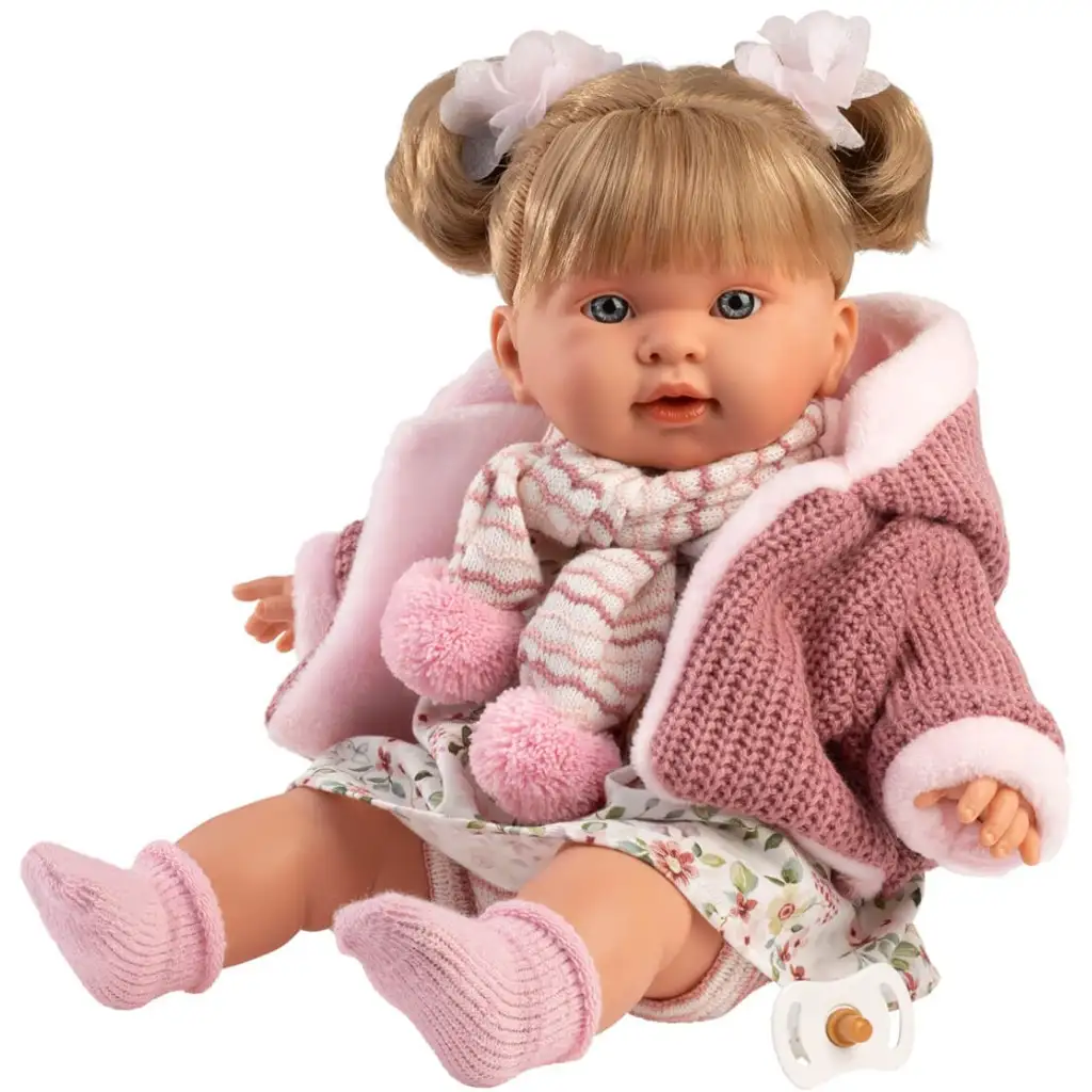 Llorens: Alexandra, plačljiva beba visoka 42 cm s dudu u ružičastoj pletenoj jakni i cvjetnoj suknji.Llorens: Alexandra, plačljiva beba visoka 42 cm s dudu u ružičastoj pletenoj jakni i cvjetnoj suknji.