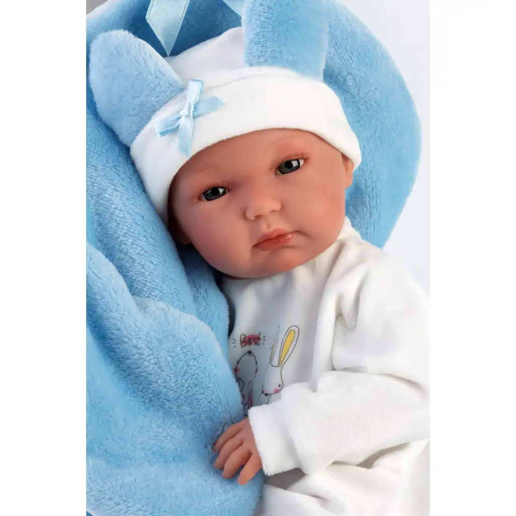 Llorens: Bimba lutka od 35 cm s plavim zečjim spavaćim vrećama