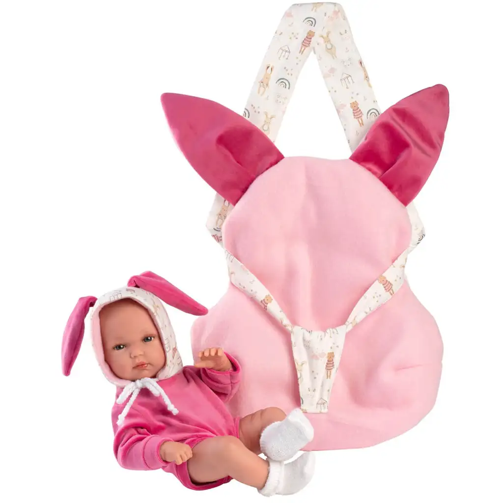 Llorens: Bimba novorođena beba s ružičastom nosiljkom s motivom zeca 35 cm