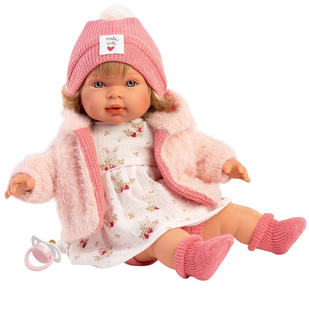 Llorens: Carla, 42 cm plačuća lutka s dudom u kapici sa srcima