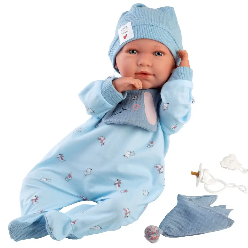 Llorens: Lutka Llorón od 42 cm s glasom i pregačom s motivom psićaLlorens: Lutka Llorón od 42 cm s glasom i pregačom s motivom psića