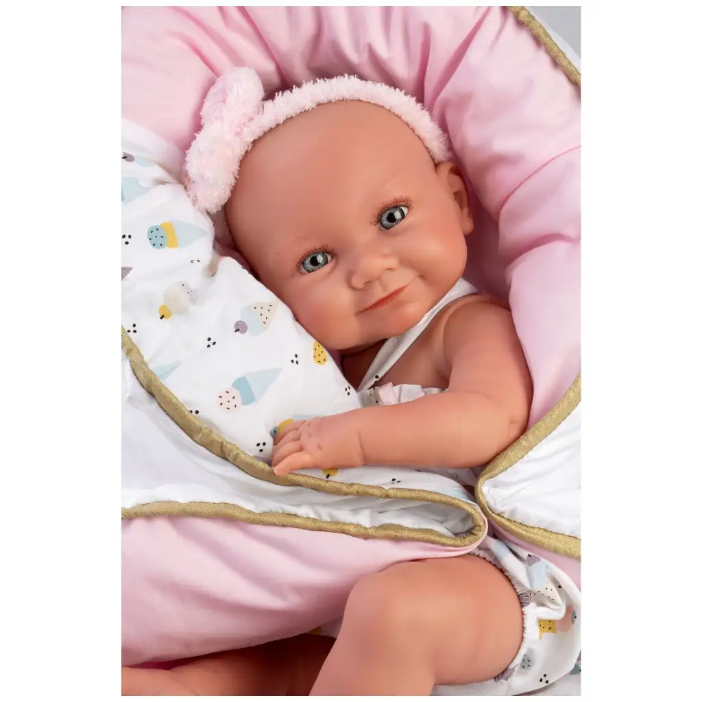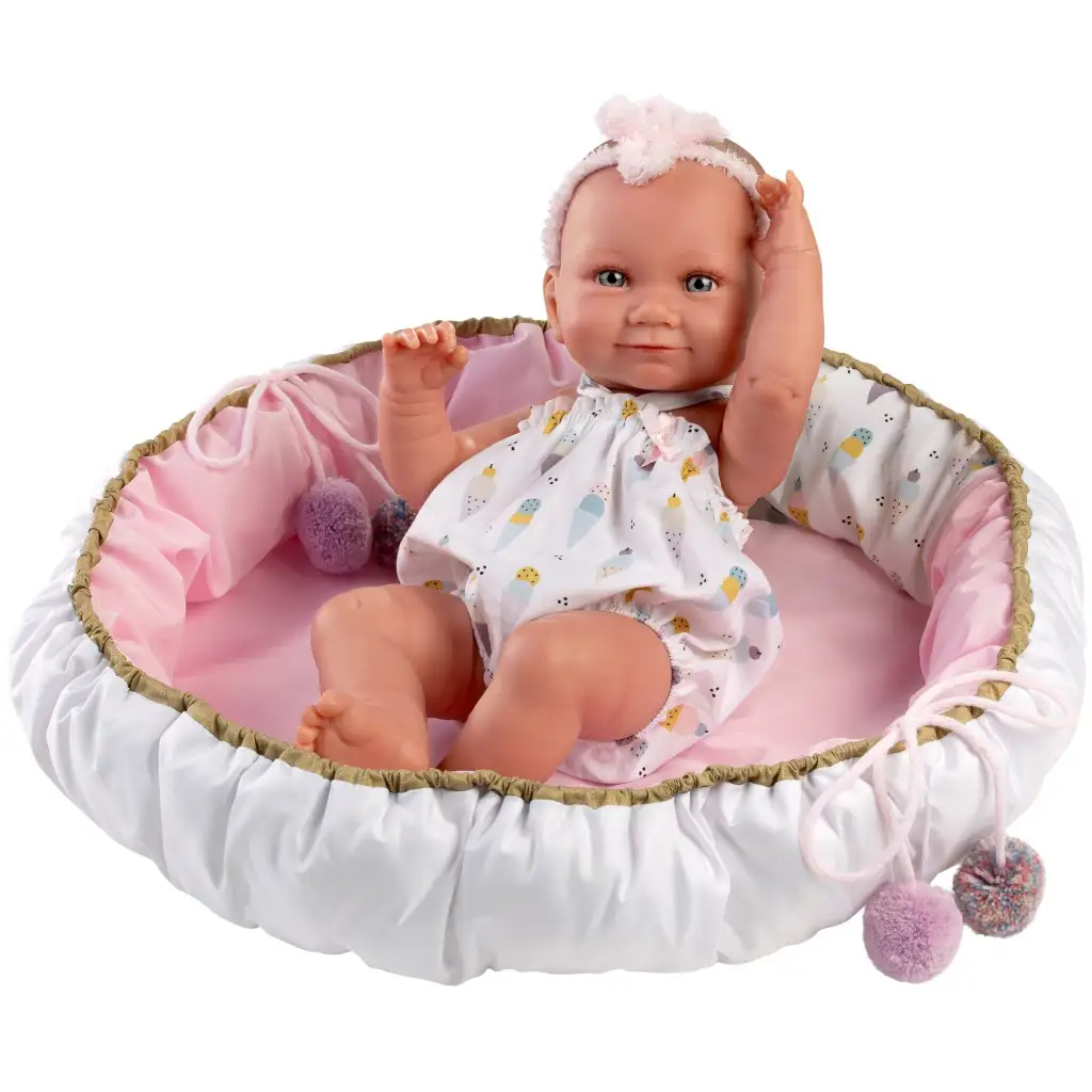 Llorens: Nica 40 cm novorođenačka lutka u odjeći s uzorkom sladoleda s kolijevkomLlorens: Nica 40 cm novorođenačka lutka u odjeći s uzorkom sladoleda s kolijevkom