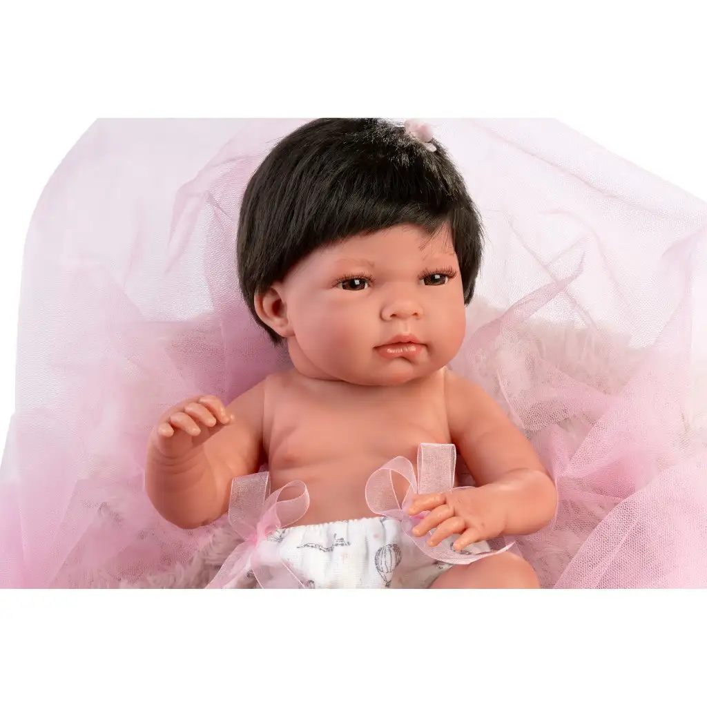 Llorens: Nica lutka visoka 40 cm s pahuljastim sivim jastukom