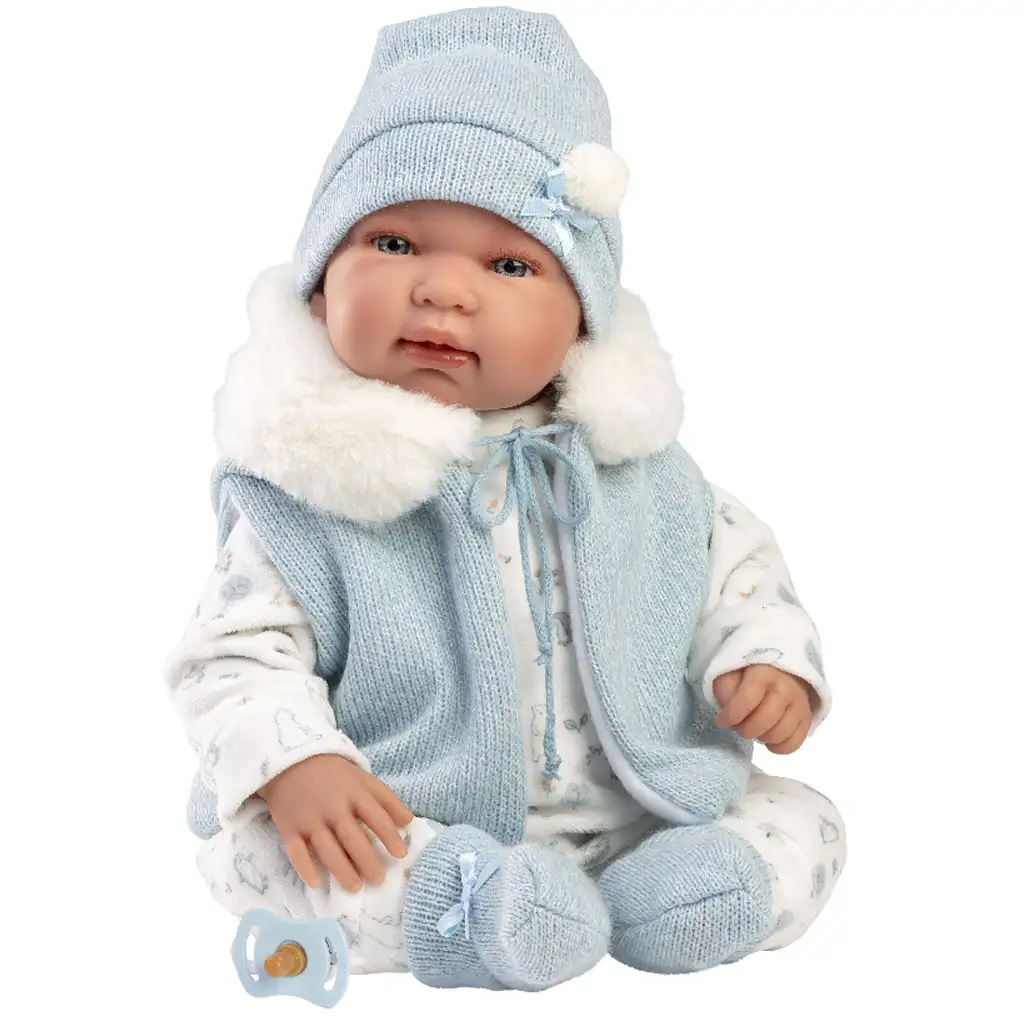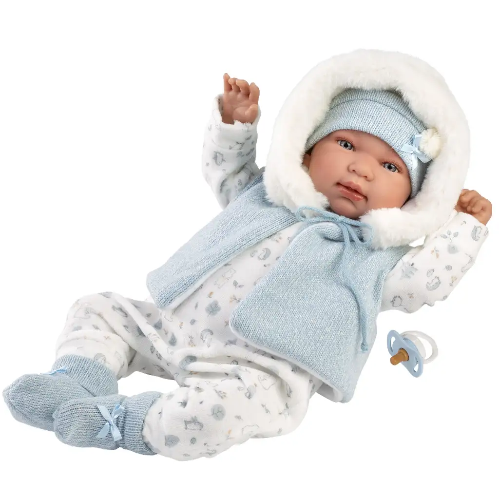Llorens: Tino, 44 cm dugačka novorođena beba s dudom u prsluku s kapuljačomLlorens: Tino, 44 cm dugačka novorođena beba s dudom u prsluku s kapuljačom