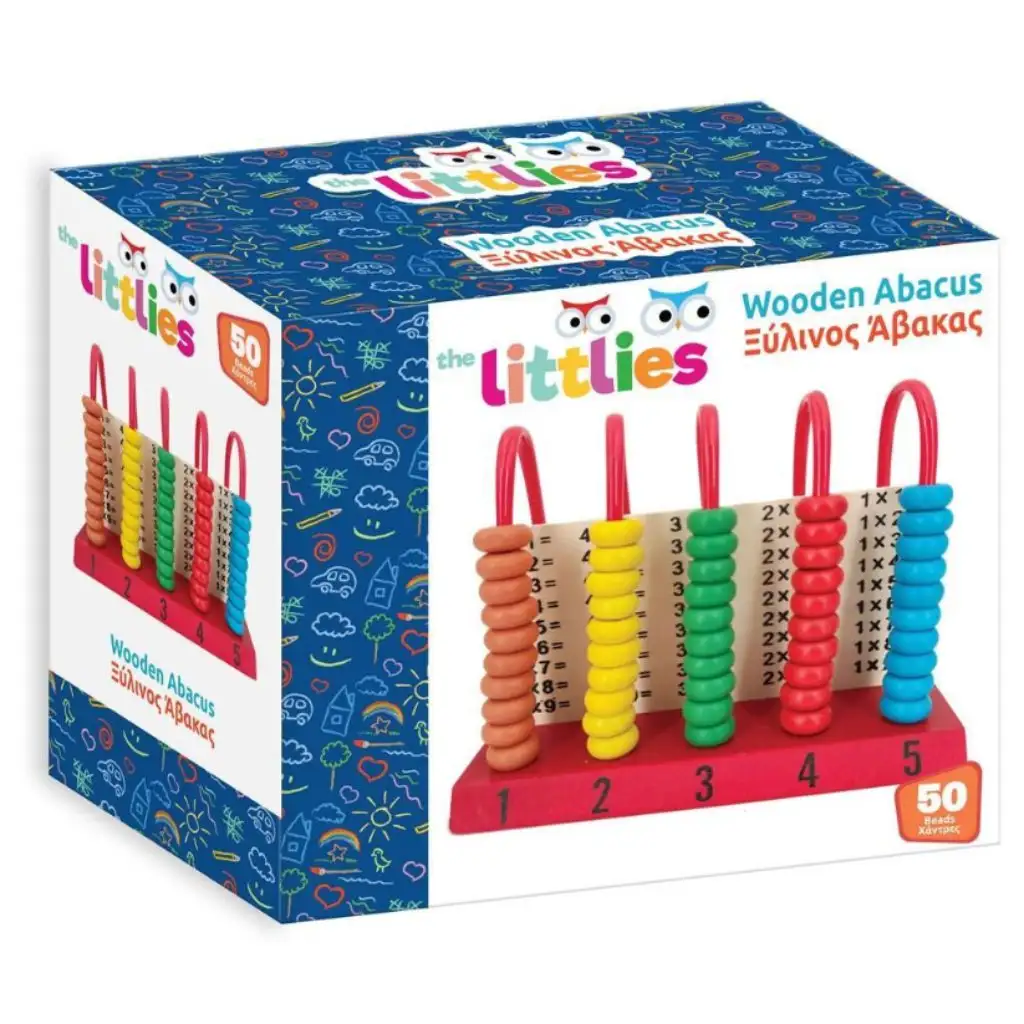 Otkrijte radost računanja i osnove matematike s drvenim abakusom The Littlies! Ovaj klasični, šareni drveni abakus savršen je izbor za djecu kako bi kroz igru usvojili osnovne vještine računanja. Abakus s pet šarenih stupaca i pedeset živopisnih perli pomaže u razumijevanju brojeva i tablice množenja.