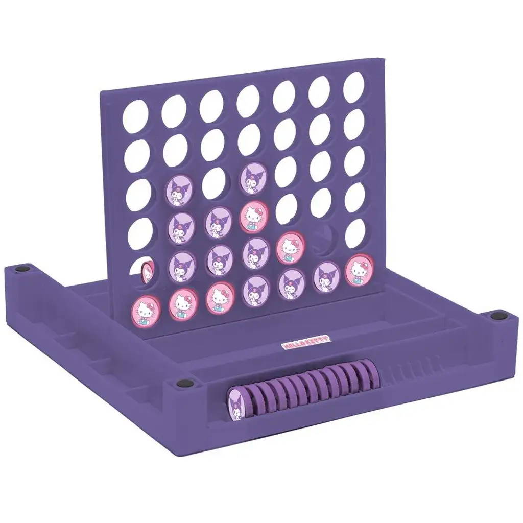 Na jednoj strani ploče nalazi se dobro poznata igra „Zmije i ljestve”, gdje djeca bacanjem kocke napreduju po poljima. Ljestve im pomažu da brže stignu do cilja, a „zmije” (u obliku veselih vrpci) ih vraćaju unatrag, pa igra uvijek donosi iznenađenja. Na drugoj strani nalazi se „4 u nizu”, gdje je cilj prvi složiti četiri ista simbola (Hello Kitty ili Kuromi) vodoravno, okomito ili dijagonalno.