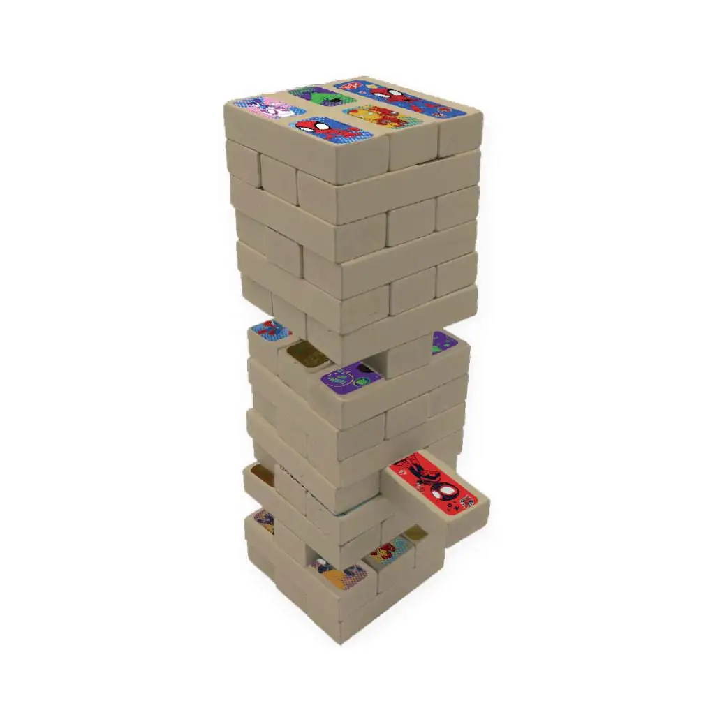 Marvel Spidey 3-u-1 društvena igra san je svakog malog superjunaka! U jednoj kutiji pronaći ćeš tri uzbudljive igre koje ne samo da zabavljaju, već i razvijaju dječju logiku, memoriju i spretnost. Set sadrži toranj za ravnotežu (Jenga), domino i igru memorije – sve s motivima Spideyja i njegovih prijatelja, poput Ghost-Spidera, Milesa Moralesa ili Iron Mana. Djeca će iznova i iznova rado uzimati šarene drvene elemente u ruke, dok kroz igru uče.