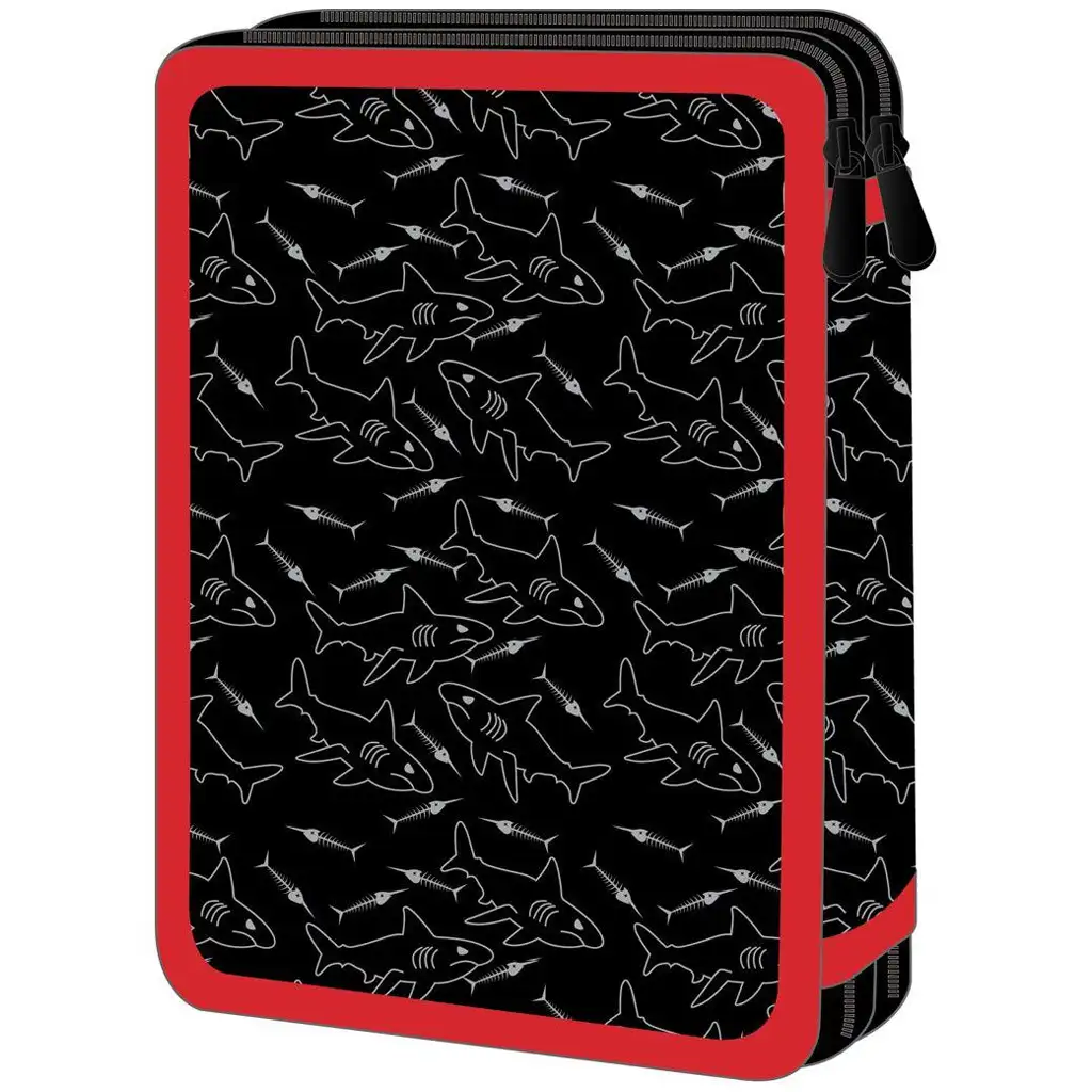 Pernica Must Team Shark sa motivom morskog psa zaista je otkačeni izbor za djecu koja vole uzbudljiv, hrabar dizajn i kojima je važna urednost školskog pribora. Upečatljivo lice morskog psa na prednjoj strani pernice sigurno će privući pažnju, dok pozadina s uzorkom kostiju riba i plivajućih morskih pasa na crnoj podlozi dodatno pojačava “opasni” dojam.