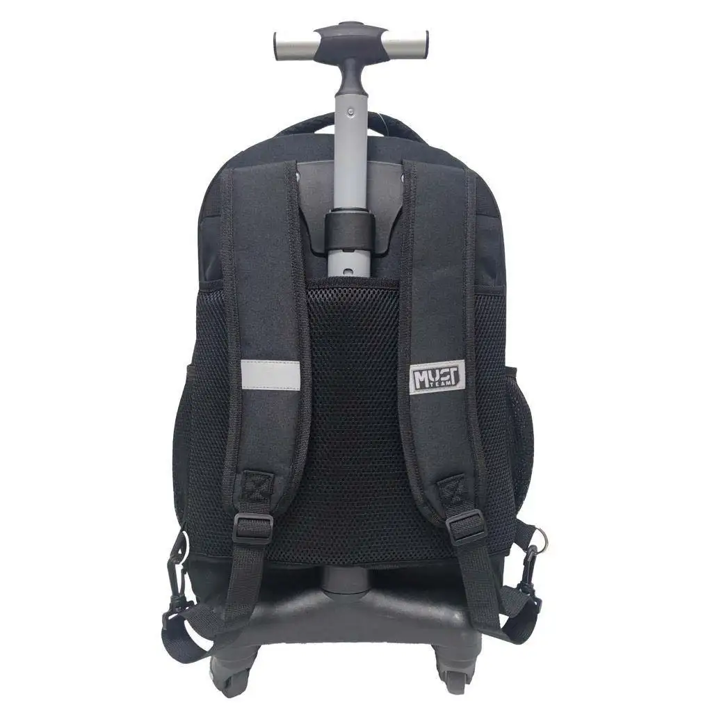 Luna: Must Team Fekete školska torba s 3 pretinca na kotačićima, ruksak 31x24x45 cm