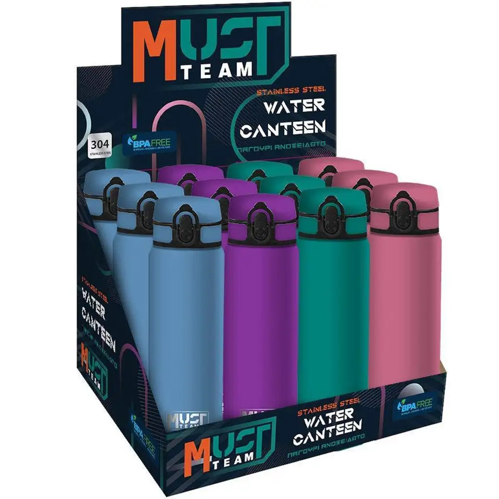 Čep bočice ima nepropusni zatvarač koji sprječava izlijevanje tekućine, čak i kada se bočica pomiče u torbi. Preklopni otvor za piće omogućuje brz pristup, a sigurnosni mehanizam na poklopcu dodatno osigurava zaštitu tijekom nošenja. Must Team logo pojavljuje se u čistom, jednostavnom obliku na bočici, čineći dizajn istovremeno sportskim i minimalističkim.
