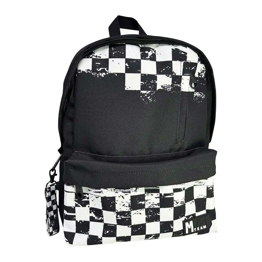 Chessboard zaobljeni ruksak iz Must Team kolekcije nije samo moderan, već i izuzetno praktičan – idealan izbor za učenike viših razreda osnovne škole ili srednjoškolce. Crno-bijeli uzorak šahovnice daje ruksaku moderan, pomalo "street style" dizajn, koji dodatno naglašavaju izblijedjela grafika i minimalistički logo, čime torba dobiva još urbaniji izgled. Dizajn se nastavlja i na stražnjim naramenicama, tako da su svi detalji usklađeni i izražajni.