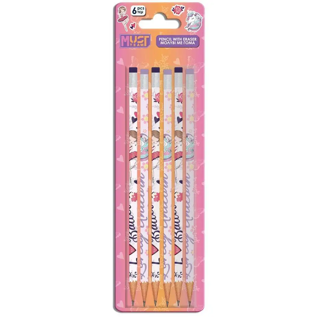 Luna: Set od 6 grafitnih olovaka s gumicom za djevojčice