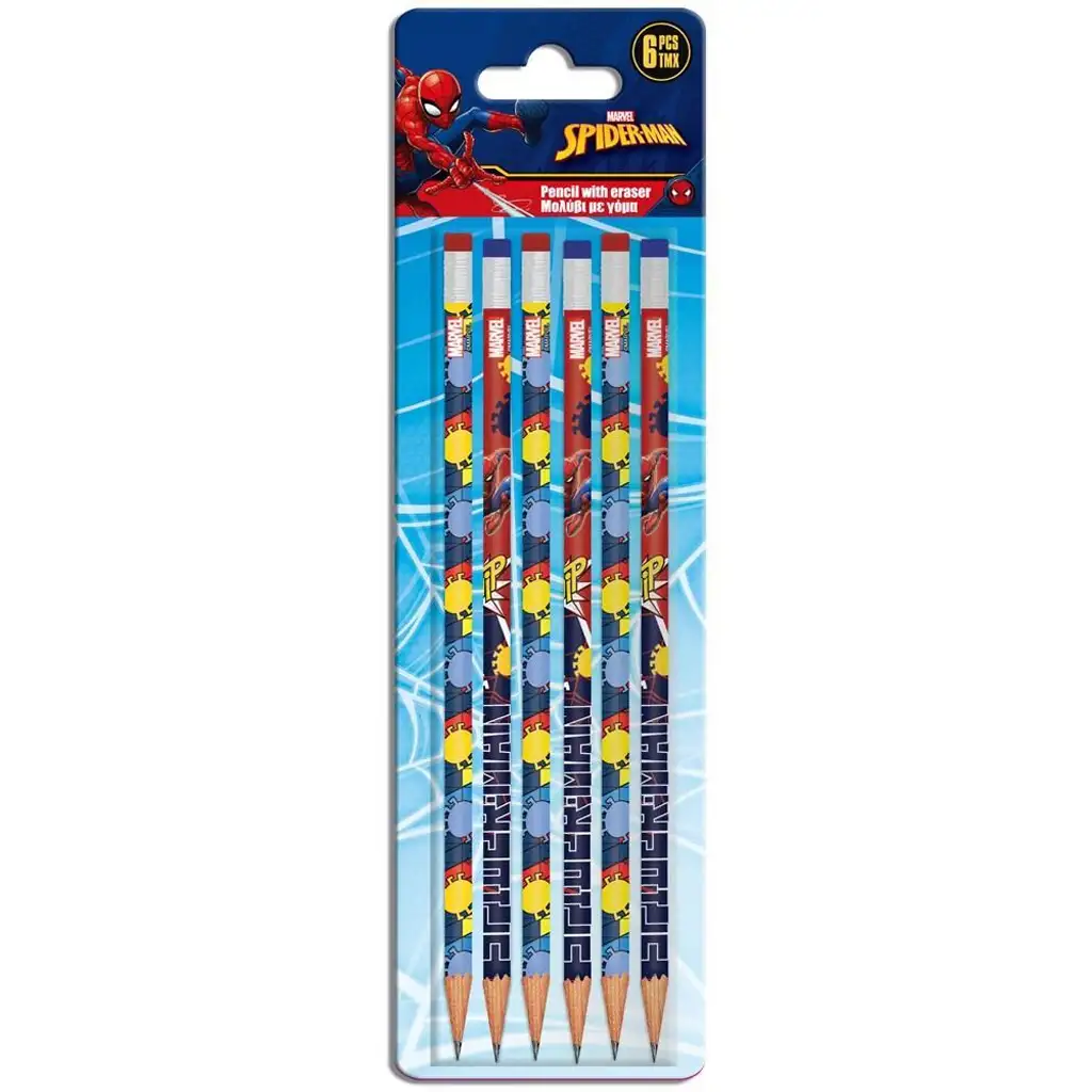Luna: Set od 6 grafitnih olovki s gumicom s motivom Spider-Mana